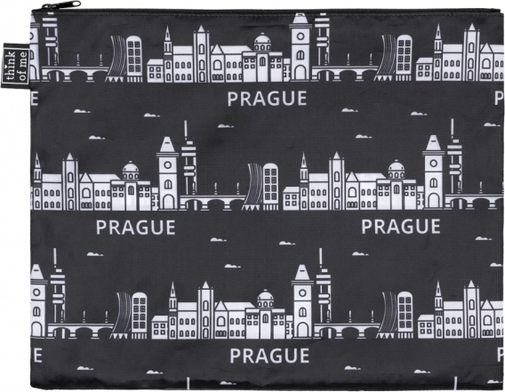 Kontrasts melnbalts prints ar PRAHAS panorāmu piešķir jūsu bagāžai raksturu un ir lieliska suvenīra izvēle.