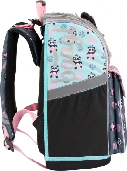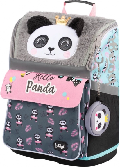 Vieglā un ergonomiskā skolas soma BAAGL Zippy Panda ar mīlīgu pandas motīvu nodrošina komfortu un kārtību visas skolas dienas garumā. Tā piedāvā bīdāmu muguras sistēmu perfektai pielāgošanai, pastiprinātu ergonomisku aizmuguri, gudru atveramo vāka mehānismu un pietiekami daudz vietas, tostarp izolētu priekšējo kabatu un sānu elastīgās kabatas. Drošību nodrošina atstarojošie elementi un izturīga, ūdensnecaurlaidīga konstrukcija.