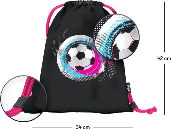 Praktisks sporta maiss maiņas apaviem vai vingrošanas piederumiem rozā dizainā Futbols no zīmola BAAGL. Izgatavots no izturīga, mazgājama materiāla un aizverams ar saraušanu, izmantojot izturīgas auklas, kas vienlaikus nodrošina ērtu nēsāšanu uz muguras.