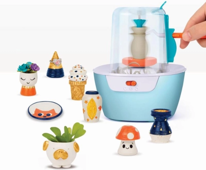 Interaktīvie elementi ļauj bērniem virpot mālu un ar sajūsmu vērot, kā veidojas viņu darbi. Rotaļlieta ir ideāli piemērota radošai spēlei.