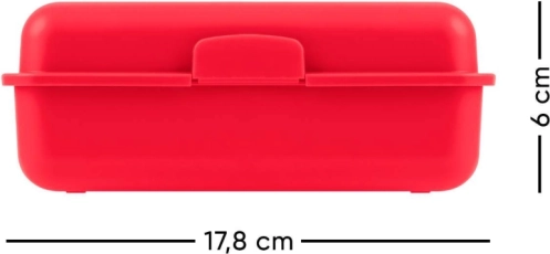 Uzturiet uzkodas svaigas un labi sakārtotas. Šī vieglā un izturīgā uzkodu kārba koši sarkanā krāsā ar TERIBEAR motīvu ir lieliska izvēle gan bērniem, gan pieaugušajiem. Pateicoties uzticamam slēdzim, kārba pārvadāšanas laikā neatvērsies un pārtika paliks savā vietā.