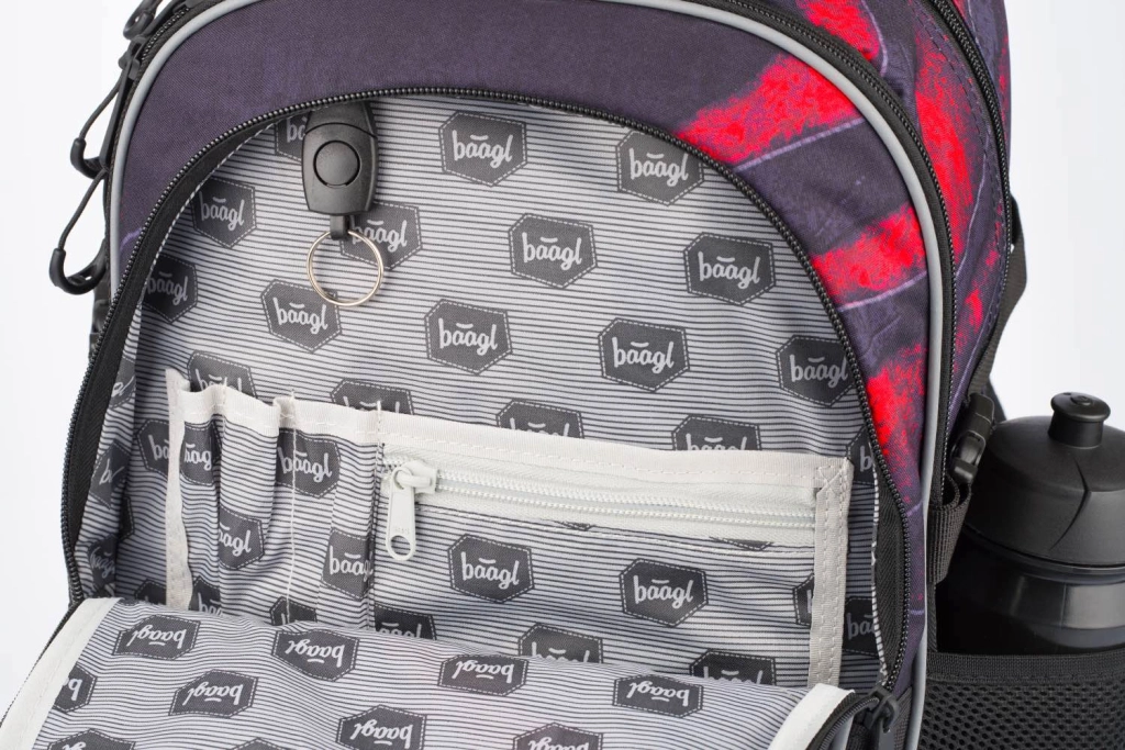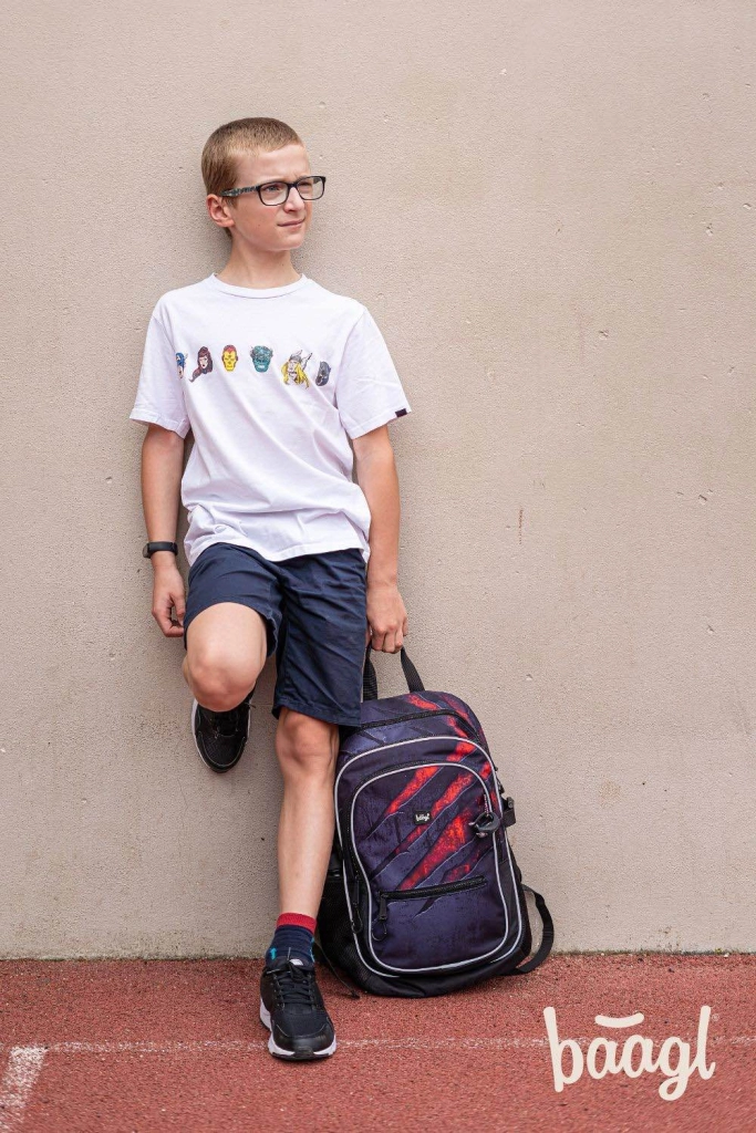 BAAGL Core Lava skolas komplekts ir ideāla izvēle skolēniem, kuri meklē uzticamu kvalitāti, ergonomiku un stilu. Mugursoma ar svaru tikai 820 g tomēr piedāvā trīs atsevišķus nodalījumus ar organizētāju, sānu tīklveida kabatas pudelei un drošu ieliktni 15" klēpjdatoram vai planšetei. Atstarojošie elementi palielina redzamību ceļā uz skolu, stingrais ūdensizturīgais materiāls garantē ilgmūžību, bet komfortu atbalsta regulējamas plecu, krūšu un kompresijas siksnas.
