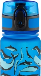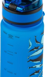 Pudele izceļas ar dekoratīvām vaļu ilustrācijām, kas ir vizuāli pievilcīgas un vienlaikus saglabā augstu funkcionalitāti.