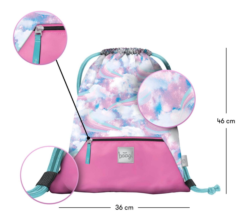 Meklējat uzticamu maisiņu apaviem un sīklietām brīvajam laikam? BAAGL piedāvā praktisku mugursomu, kas apvieno izturību, funkcionalitāti un stilīgu debesu motīvu. Pateicoties savilkšanai ar auklām, to ir viegli uzlikt uz muguras, un viss nepieciešamais vienmēr būs pa rokai.