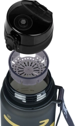 Šī vieglā un izturīgā pudele no sertificēta tritāna nodrošina ērtu hidratāciju visas dienas garumā. Pateicoties drošajam bloķējamajam vāciņam, neizlīs ne pilīte, un integrētais sietiņš ļaus pagatavot augļu limonādi vai tēju, lai gabaliņi nenonāktu kaklā.