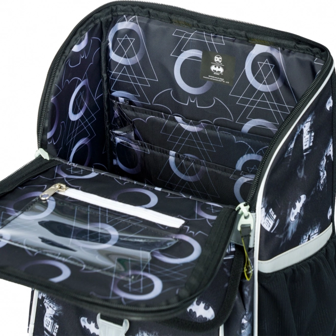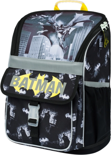 Praktiskā atveramā vāka sistēma ļauj piekļūt somas saturam tieši no sola. Iekšpusē atradīsiet caurspīdīgu kabatu stundu sarakstam un organizatoru ar fiksējošu gumiju pārskatāmai grāmatu un burtnīcu glabāšanai. Izolētā priekšējā kabata ar sprādzi pasargā uzkodu, sānu sietiņkabatas der dzēriena pudelei. Izturīgi ūdensizturīgi materiāli, stabila apakša un atstarojoši elementi paaugstina izturību un drošību ceļā uz skolu.