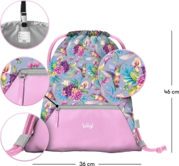 Praktisks sporta maisiņš Baagl ar kolibri motīvu ir ideāli piemērots čībām, apaviem un brīvā laika aktivitātēm. Tam ir izturīgs, viegli tīrāms materiāls, praktiska priekšējā kabata ar rāvējslēdzēju un izturīgas auklas ērtai nēsāšanai uz muguras. Pateicoties karabīnei, to viegli piestiprināt pie skolas somas.