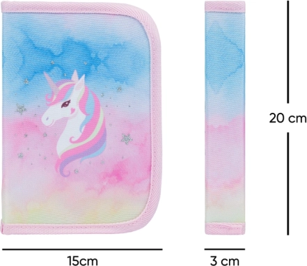 Stilīgs skolas penālis ar vienradža motīvu Rainbow Unicorn no BAAGL iepriecinās ikvienu skolēnu. Pateicoties divām atlokām, tas piedāvā pārskatāmu izvietojumu, kvalitatīvu rāvējslēdzēju un izturīgu tekstila izpildījumu. Ideāli piemērots ikdienas lietošanai skolā – praktisks, viegls un bez pildījuma, lai varētu komplektēt savas rakstāmpiederumu vajadzības.