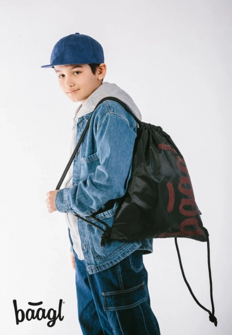 Baagl Skate maiss ar sarkanu logotipu un modernu izskatu ir stilīga izvēle ikdienai.