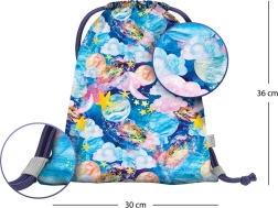 Stilīgs maiss ar zvaigznēm un planētām lieliski noder bērnudārzam, treniņiem un izbraucieniem. Tekstila materiāls ir izturīgs un viegli kopjams, tāpēc nelielus netīrumus var vienkārši noslaucīt. Pateicoties praktiskai savilkšanai ar aukliņām, bērni maisu var ērti atvērt un aizvērt paši.