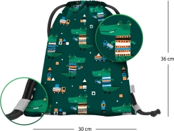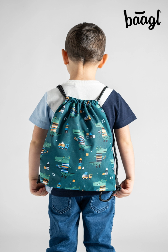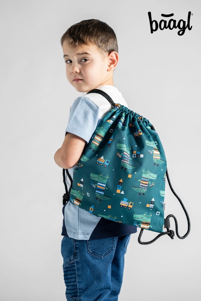 Stilīgs un praktisks BAAGL maisiņš ar rotaļīgu krokodila motīvu nodrošina izturīgu izpildījumu ikdienas lietošanai. Viegli kopjams pārklājums atvieglo tīrīšanu, savukārt stingrās auklas nodrošina drošu aizvēršanu un ērtu nēsāšanu uz muguras.