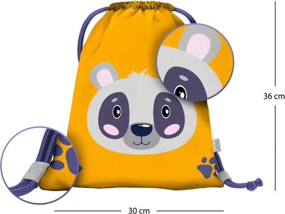 Mīlīgs BAAGL pirmsskolas maisiņš ar pandas motīvu ir ideāli piemērots apaviem, pulciņiem un sīklietām. Izgatavots no izturīga, mazgājama materiāla, ar drošu savilkšanu ar auklām un to var ērti nēsāt uz muguras kā mugursomu.