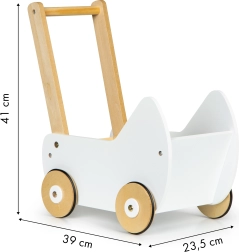 Koka ratiņi ECOTOYS piedāvā lielisku izklaidi ikvienai meitenei, kurai patīk rūpēties par savām lellēm un mīkstajām rotaļlietām. Ratiņi ļauj spēlēties “māmiņās” un attīsta bērna iztēli. Pretizslīdes gumijas lentes uz riteņiem aizsargā grīdu no saskrāpēšanas.