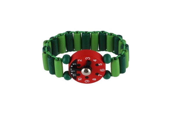 Pulkstenis radīts, domājot par bērna komfortu – elastīgas krellīšu vai segmentu siksniņas viegli pielāgojas plaukstas locītavai, bet gludās koka detaļas ir patīkamas taustei. Ideāli kā neliela dāvana, bērnudārzam vai mājas “rotaļmācībām”.