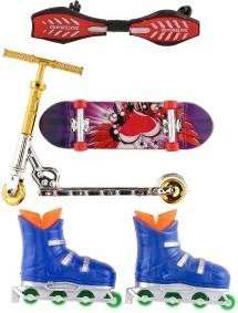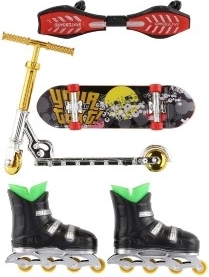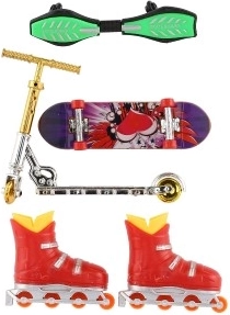 Šis pirkstu komplekts apvieno četrus iecienītus pilsētas sporta veidus mini izmērā: skrituļdēli, vējdēli, inline skrituļus un skrejriteni. Bērni var izmēģināt jaunus trikus, veidot savas trases un attīstīt radošumu un veiklību. Pateicoties kompaktajiem izmēriem, komplektu ir viegli ievietot mugursomā, un tas ir lieliski piemērots izklaidei jebkur.