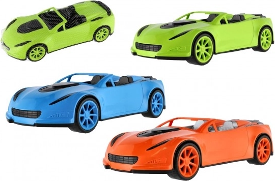 Liels plastmasas sporta auto ar atvērtu virsbūvi iepriecinās mazos braucējus ar realistisku izskatu un vienmērīgu brīvgaitas braukšanu. Piemērots gan bērnu istabai, gan rotaļlaukumam — tas ir viegls, izturīgs un ērti pārnēsājams, pateicoties iepakojumam tīklā.