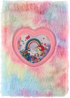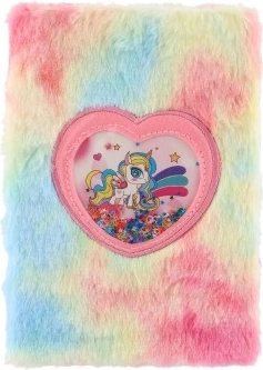 Izbaudiet rakstīšanu un radošumu ar šo stilīgo piezīmju bloku varavīksnes pūkainā noformējumā. Mīkstā virsma ir patīkama pieskārienam, bet sirsniņas lodziņš ar fliteriem un vienradža motīvu piešķir vākam rotaļīgu, maģisku izskatu. Piezīmju bloks ir lieliski piemērots skolai, brīvajam laikam un kā personīgā dienasgrāmata.