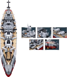 Sarežģītas virsbūves, lielgabalu torņi un antenas no 1849 detaļām veido autentisku leģendārā kaujas kuģa izskatu.