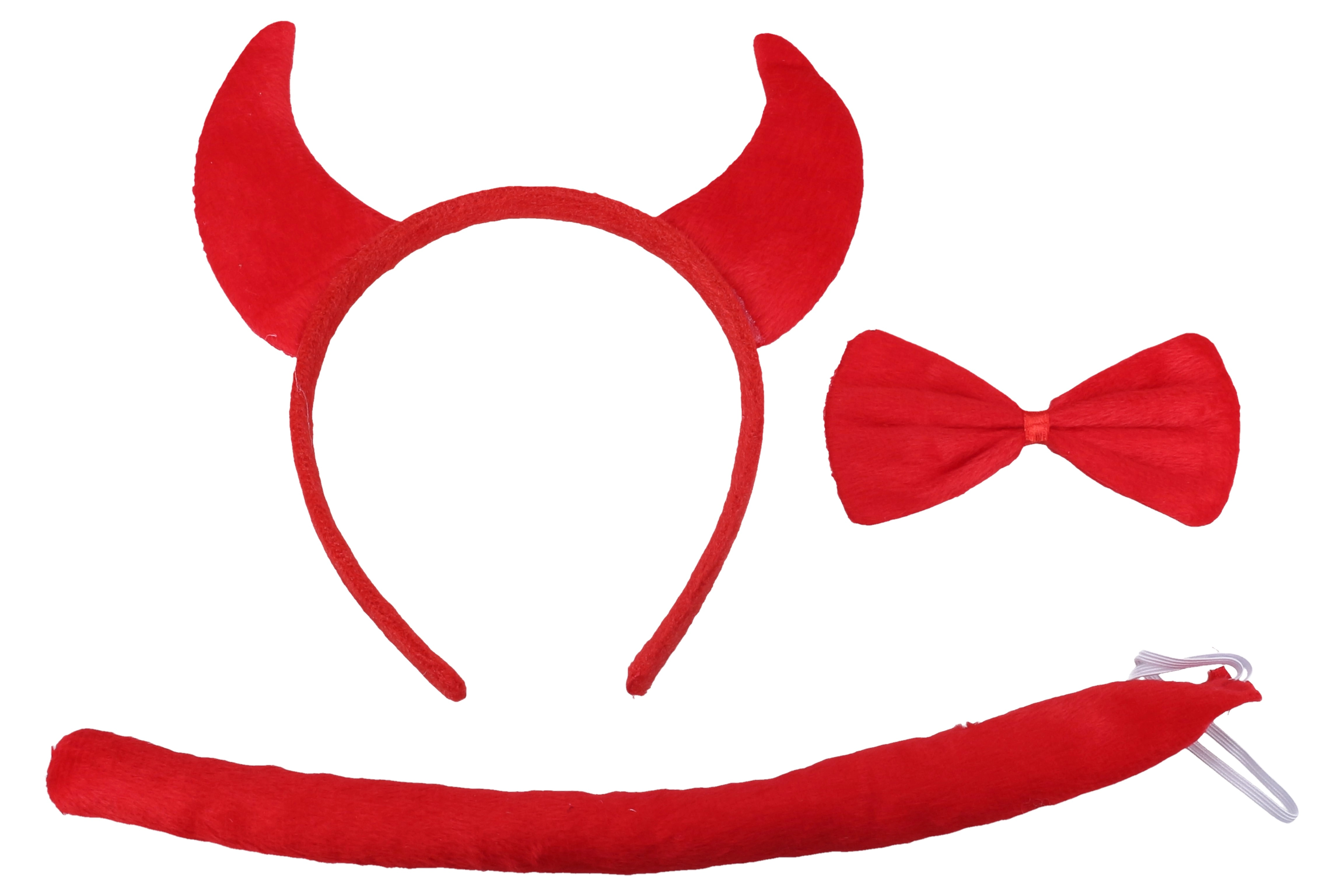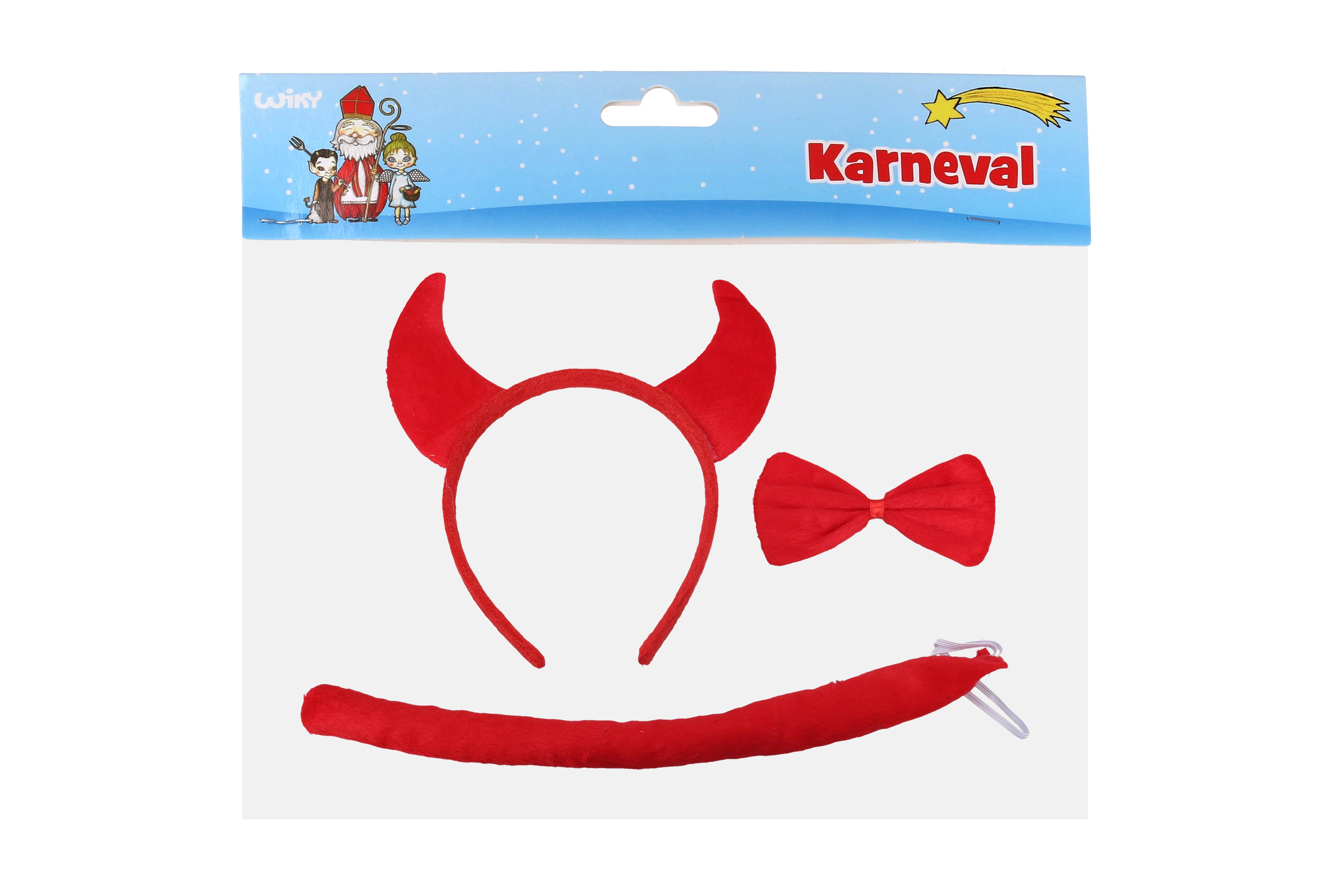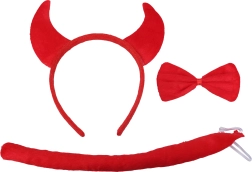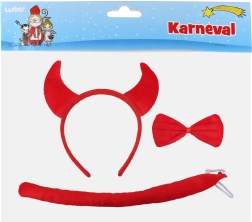 Šis velna aksesuāru komplekts ietver stīpiņu ar ragiem, tauriņu un asti – ideāli jūsu kostīmiem tādos pasākumos kā meteņi, svinības un ballītes.