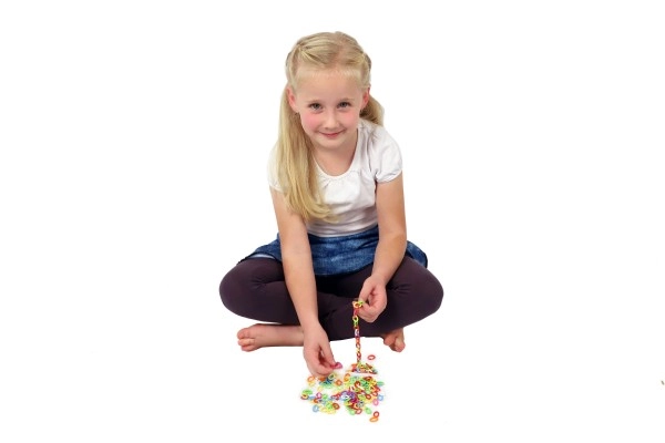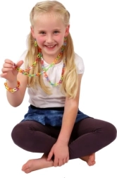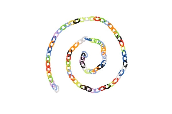 Pietiekami daudz krāsainu posmu ķēdēm, aprocēm un dekorācijām. Bērni trenē iztēli un sīko motoriku ar katru sastiprinājumu.
