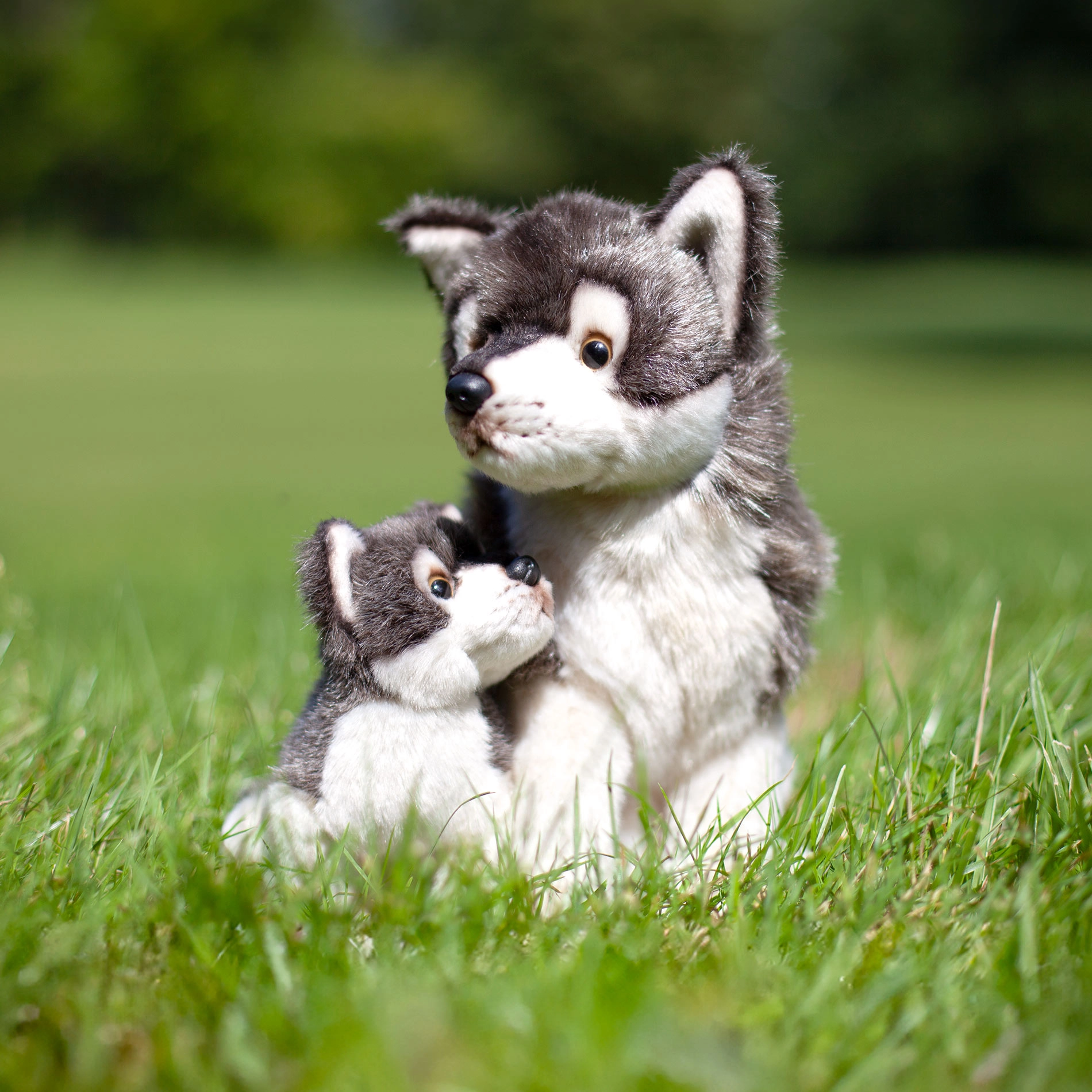 Šis sēdošais vilks ar vilcēnu no Rappa ir izgatavots no ekskluzīva, pieskārienam maiga plīša, kas aicina uz mīļošanos. Pildījumu veido pārstrādātas PET pudeles, tāpēc varēsiet baudīt lielisku sajūtu par izklaidi, kas ir saudzīga pret dabu. Vilcēns ar pieaugušo vilku savienots tikai ar diegu – to var viegli atdalīt, iegūstot divas atsevišķas rotaļlietas.