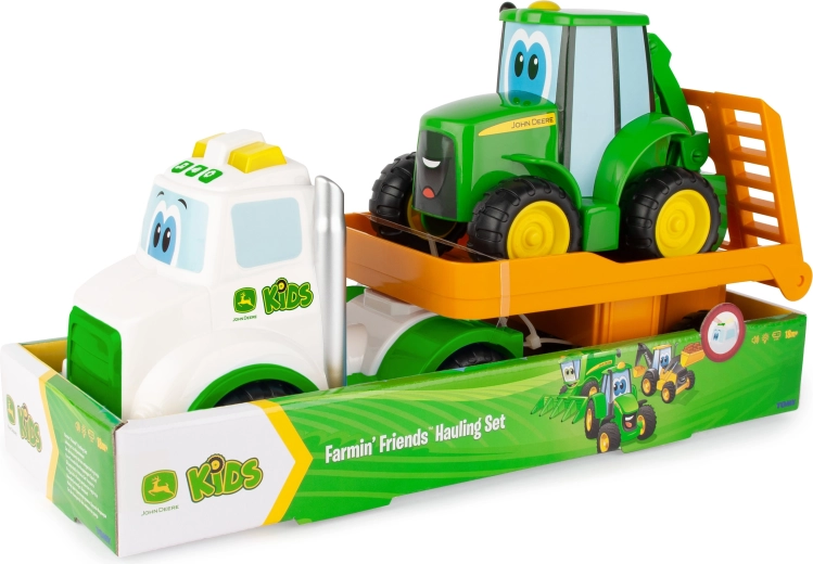 Šis rotaļu komplekts apvieno vilcēju ar iebrauktuvi un draudzīgo Džonija traktoru klasiskajās JOHN DEERE krāsās. Bērni trenē smalko motoriku, iekraujot un izkraujot, un attīsta iztēli, spēlējoties lauku sētā. Pateicoties 37 cm izmēram, komplekts ir ērti satverams un stabils.