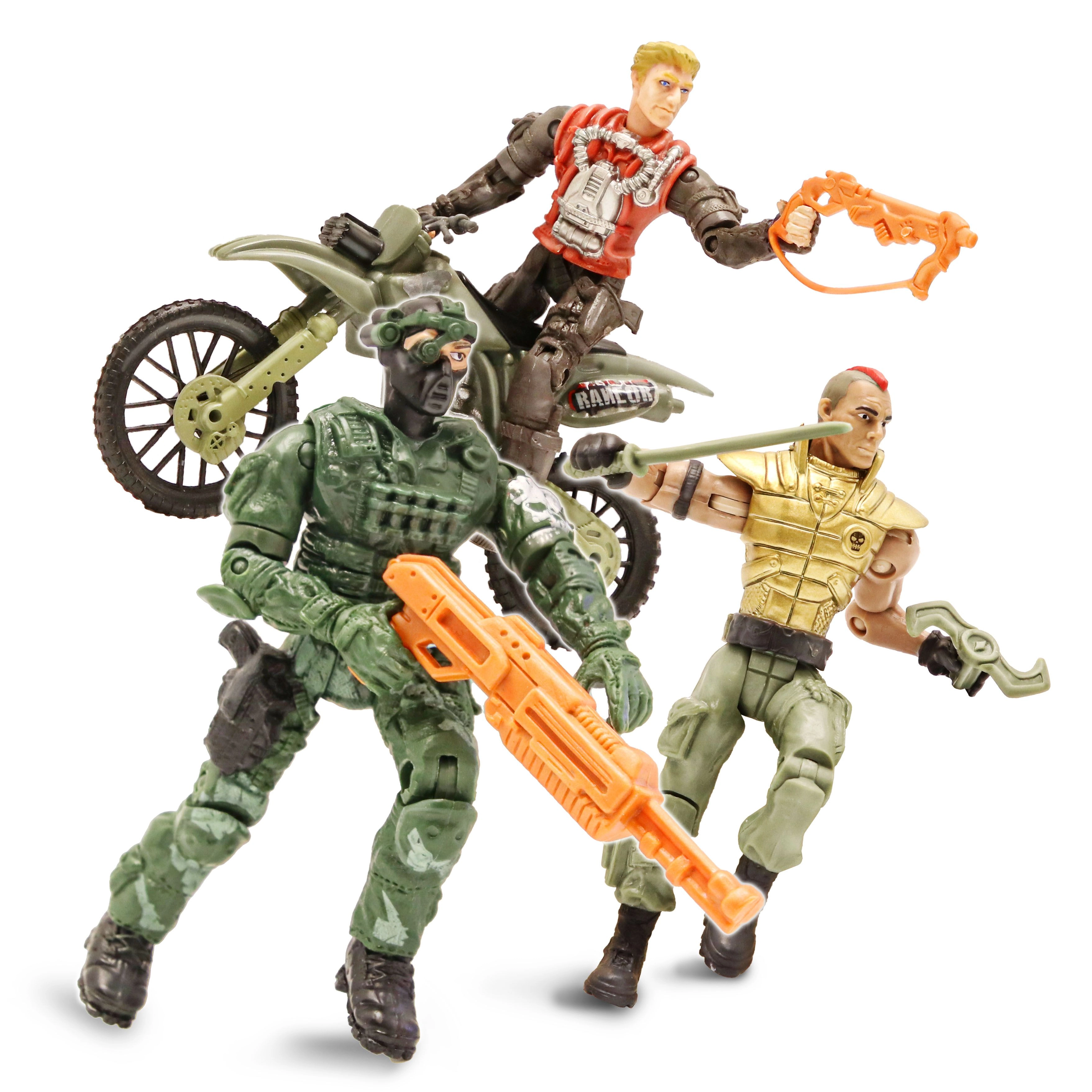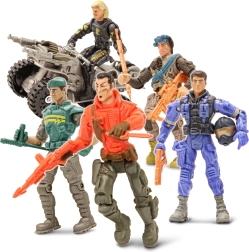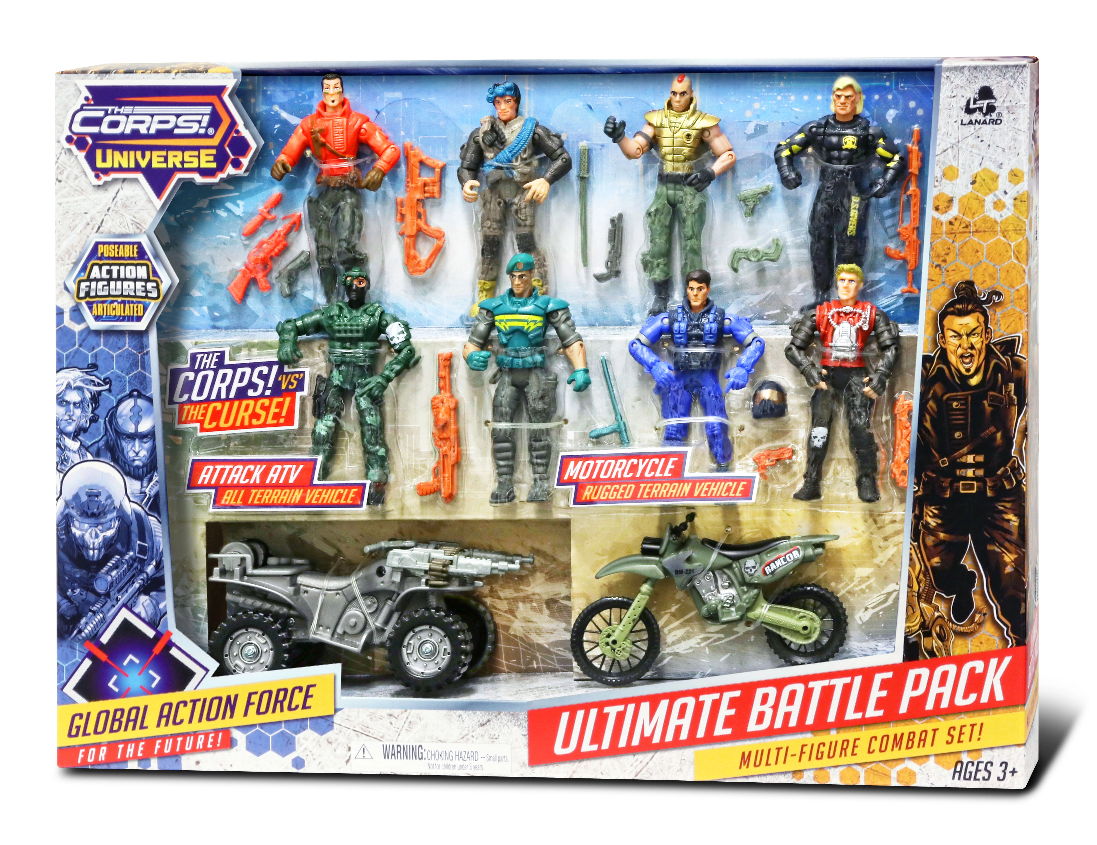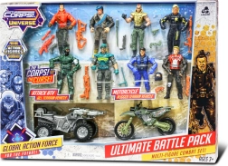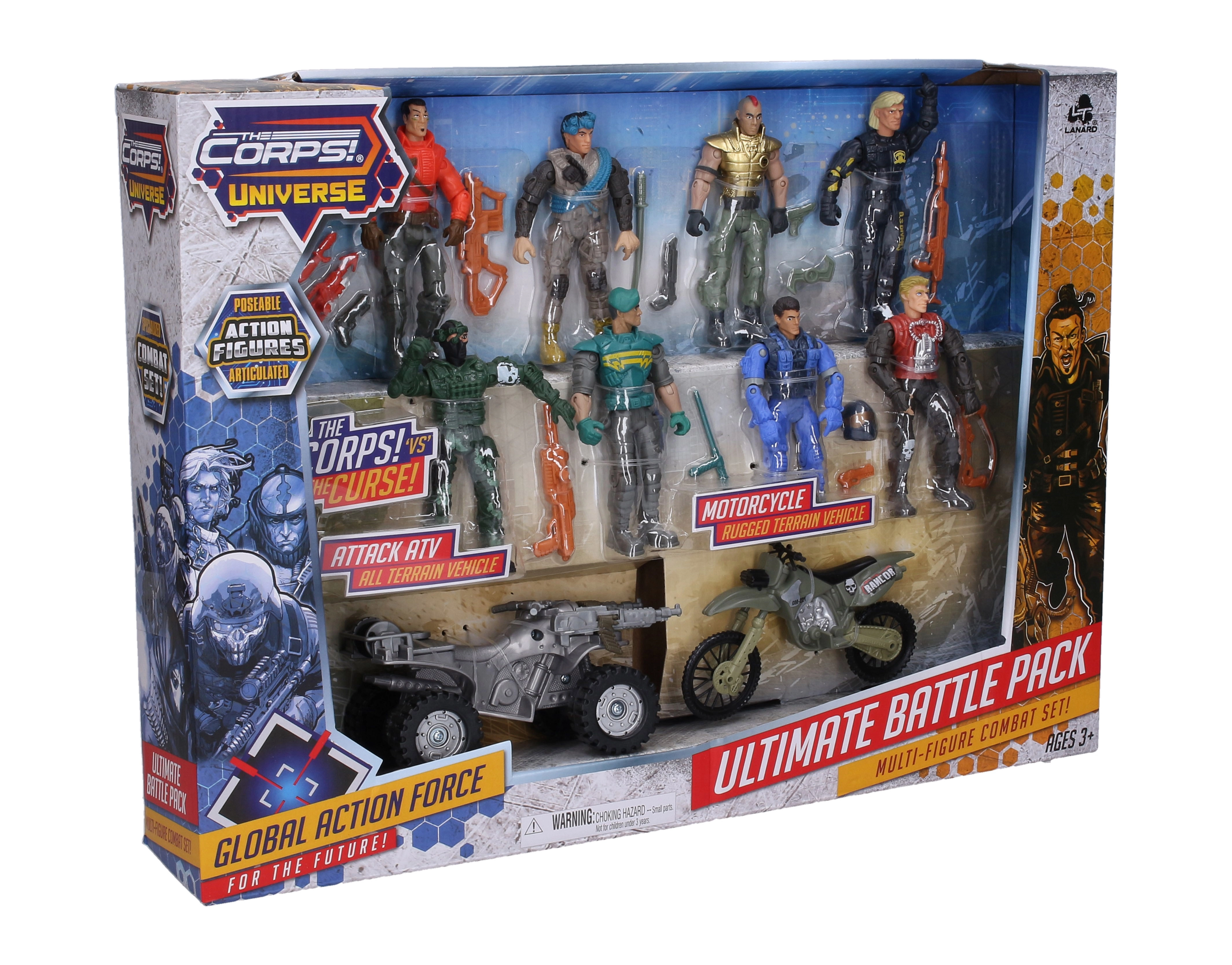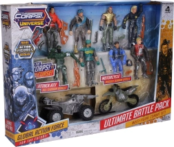 Darbīgs komplekts mazajiem piedzīvojumu meklētājiem: The Corps piedāvā 8 detalizēti izstrādātas kareivju figūras 11 cm augstumā, papildinātas ar transportlīdzekļiem dinamiskām misijām. Komplektā ietilpst motocikls 13 cm un kvadricikls 14 cm, kas nodrošina spraigu spēli un daudzas stundas izklaides.