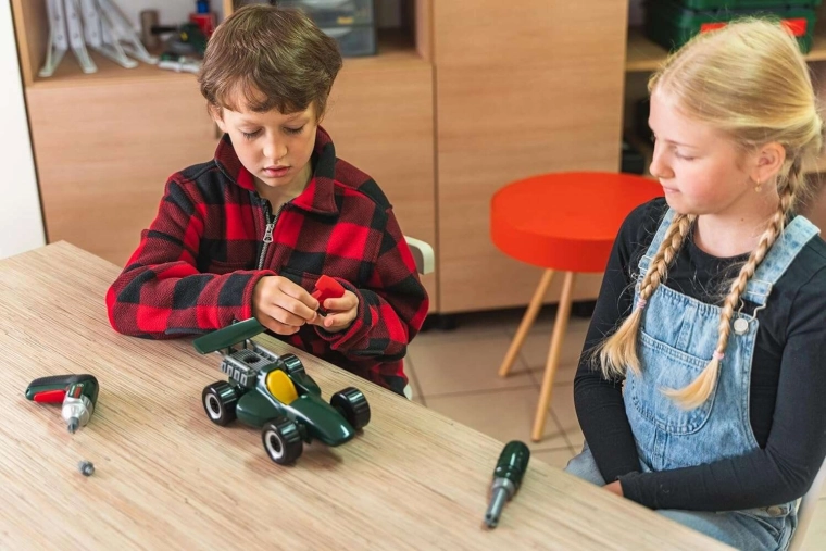 Auto būvēšana un izjaukšana ir intuitīva un droša. Bērni trenē roku–acu koordināciju, loģisko domāšanu un pacietību, vienlaikus izbaudot dinamisku braukšanu ar gatavo modeli. Pateicoties maināmajām detaļām (piem., spoilera elementiem) un uzlīmēm, katrs mazais mehāniķis var pielāgot auto tieši savām vēlmēm.