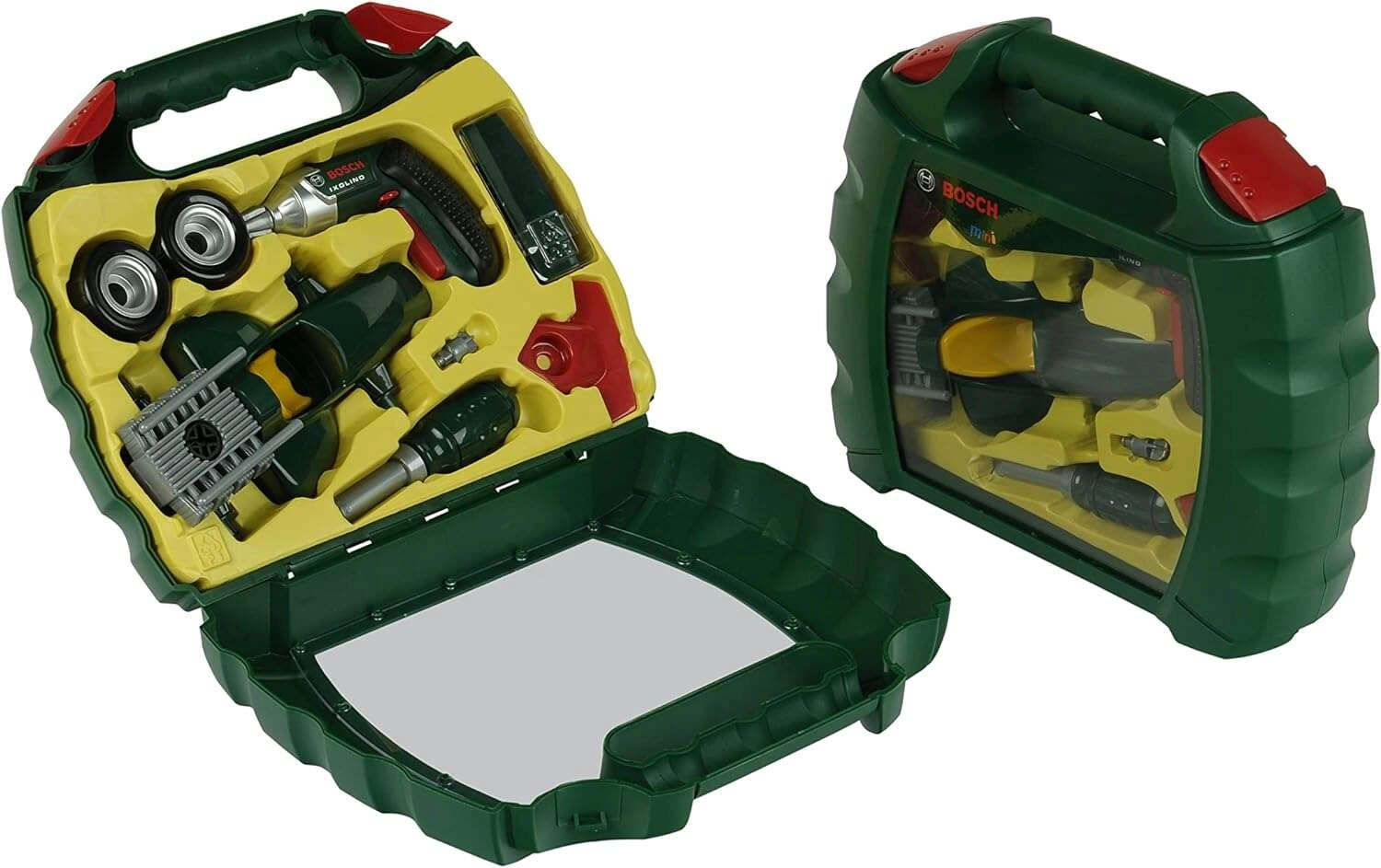 Šis realistiskais komplekts ar BOSCH mini licenci ietver bērnu akumulatora skrūvgriezi Ixolino ar rotējošu bitu un skaņas efektu, skrūvgriezi, skrūves un visas detaļas, kas nepieciešamas tumši zaļa sacīkšu auto uzbūvei. Viss ir pārskatāmi ievietots izturīgā plastmasas koferī ar caurspīdīgu vāku un ērtiem rokturiem, tāpēc rotaļlietu ir viegli paņemt līdzi jebkur.