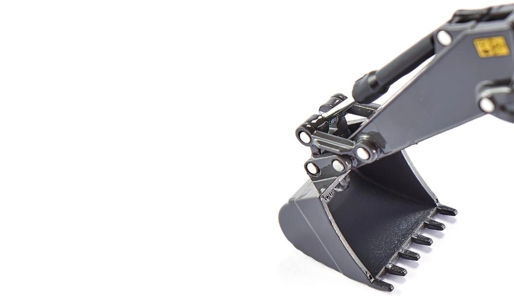 Šarnīru konstrukcija ļauj reālistiski rakt, kraut un izsūkt, tāpēc modelis uzticami atdarina īsta kāpurķēžu ekskavatora darbu.