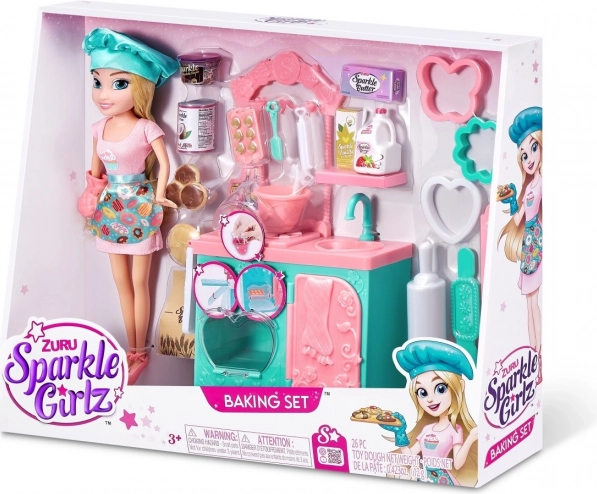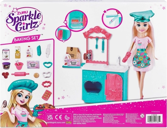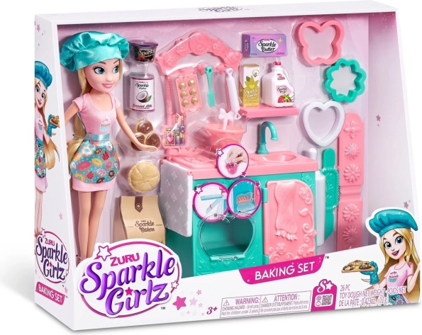 Sparkle Girlz cepšanas komplekts piedāvā ne tikai iespēju “pagatavot” gardus našķus, bet galvenokārt attīstīt bērnu iztēli. Ar šo pilno komplektu, kurā ir tematiski tērpta lelle ar noņemamu priekšautu un cepuri, bērni var pilnvērtīgi izpaust savu radošumu.