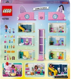 Ienirstiet jautrībā ar LEGO Gabijas kaķumāju, kas paredzēta bērniem no četru gadu vecuma. Šis košais namiņš piedāvā astoņas dažādas istabas, kas savienotas ar bīdāmu liftu. Bērni var cept virtuvē, spēlēties ar slidkalniņu spēļu istabā, darboties darbnīcā vai izklaidēties uz jumta ballītē. Piedzīvojiet stāstus ar iemīļotajiem varoņiem — Gabiju, Pandukicu, Lakotku un Sirēnkaķīti.