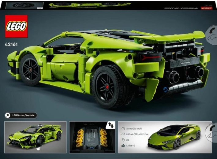 Šis reālistiskais modelis klasiskā zaļā krāsā uzticami ataino LAMBORGHINI Huracán Tecnica agresīvās līnijas un tehnoloģijas. Pārdomātās funkcijas sniedz prieku gan bērniem, gan pieaugušajiem – gan pašā būvēšanā, gan arī vēlāk, izzinot mehāniku: no kustīga desmitcilindru dzinēja un funkcionējošas priekšējo riteņu stūrēšanas līdz atveramiem paneļiem un durvīm.