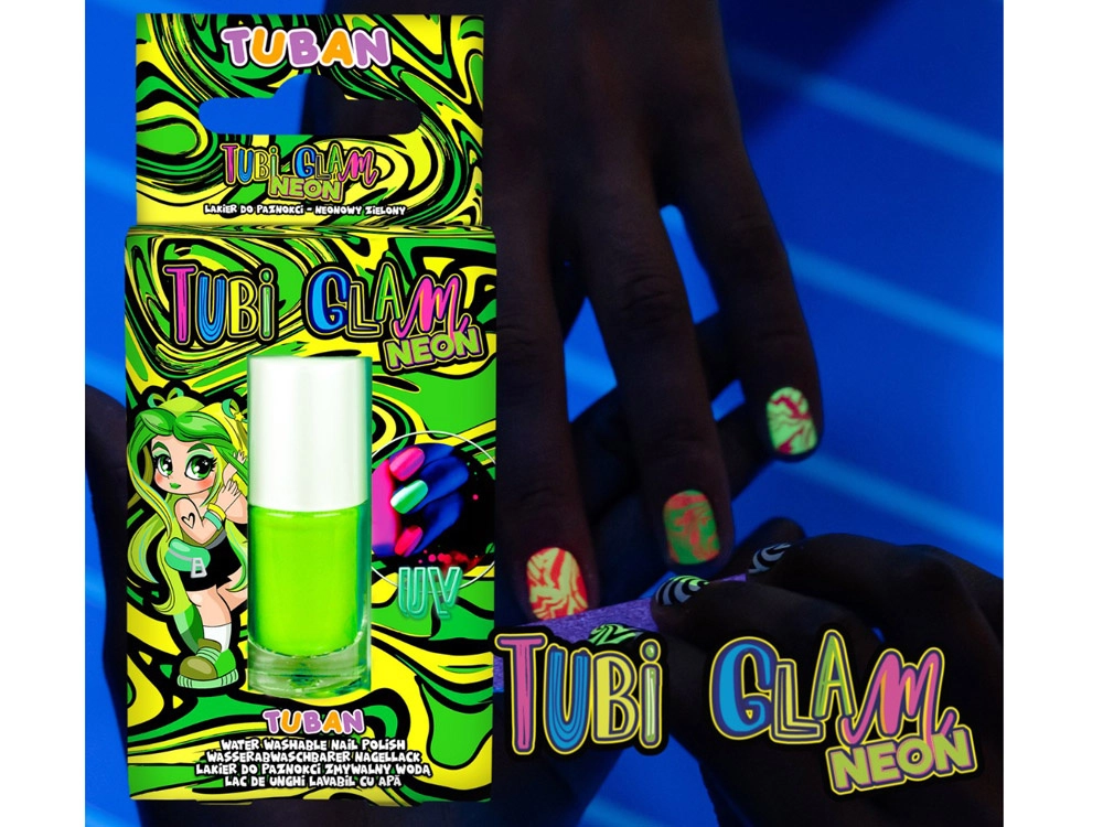 Atklājiet rotaļīgu skaistumu ar nagu laku TUBI GLAM NEON spilgti zaļā tonī. Tai ir intensīva neona krāsa, spīd UV gaismā un ir droša bērnu nagiem. Laka ir pilnīgi bez smaržas, viegli nomazgājama ar ūdeni un, pateicoties rūgtajai garšai, attur no nagu graušanas.