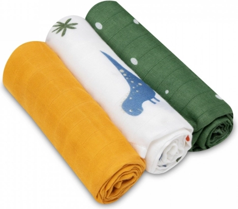 LIONELO Dino komplekts piedāvā trīs maigus autiņus no 100% bambusa auduma, kas izceļas ar īpašu maigumu un gaisu caurlaidību. Pateicoties bambusa dabiskajām īpašībām, tie nodrošina zīdainim komfortu jebkurā gadalaikā un ir saudzīgi pat pret jaundzimušo jutīgo ādu.