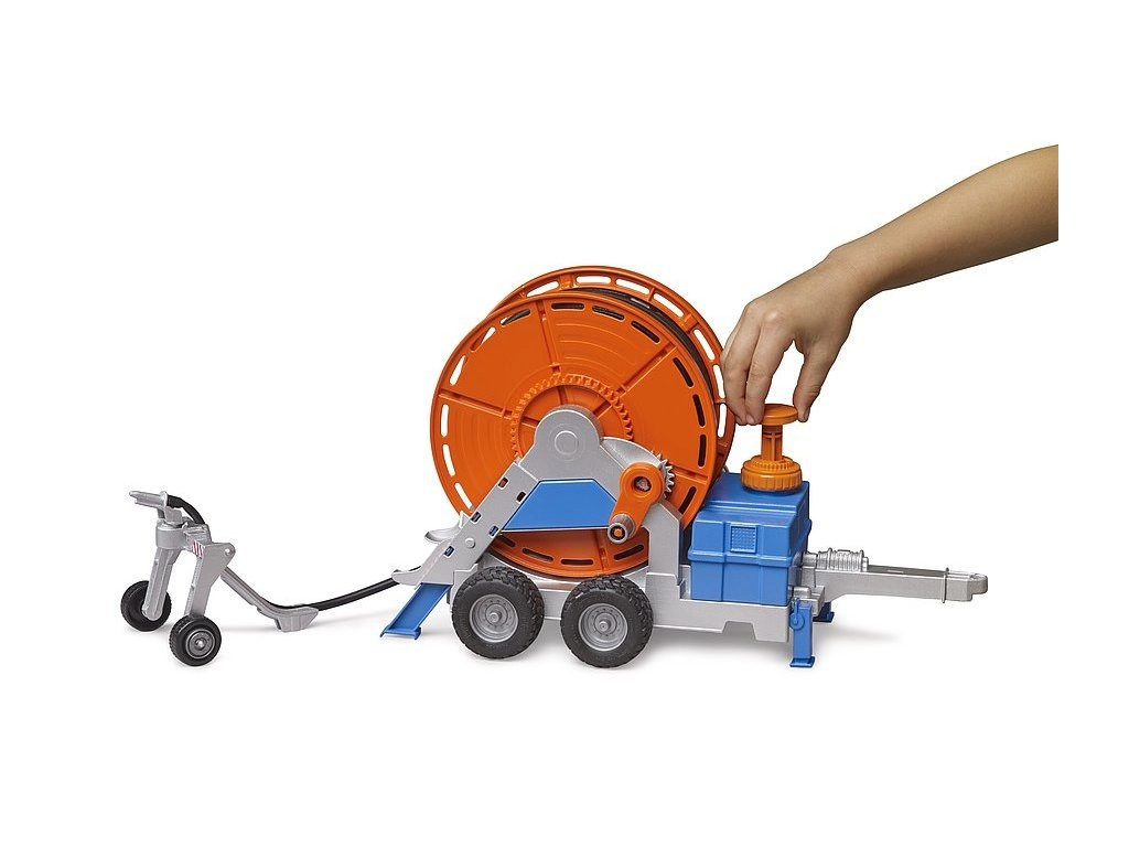 Piešķiriet savai saimniecībai ūdeni gluži kā īstenībā. Laistīšanas piekabei BRUDER mērogā 1:16 ir spole ar kloķi ērtai 1,8 m šļūtenes uzvilkšanai un atvilkšanai, kā arī tvertne ar darbojošu sūkni, lai ūdens tiešām plūstu. Bērni izbaudīs autentisku spēli, laistot rotaļu laukumus, dārzus un laukus.