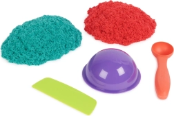 Iepakojumā ir 680 g smilšu divās krāsās – zilā un sarkanā; tās sajaucot, iegūsiet violetu. Komplektā ietilpst arī 3 piederumi vēl jautrākai spēlei: bļodiņa, griešanas nazītis un kausiņš lodīšu veidošanai.