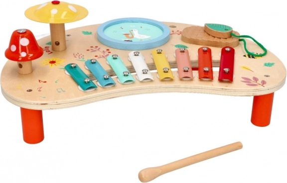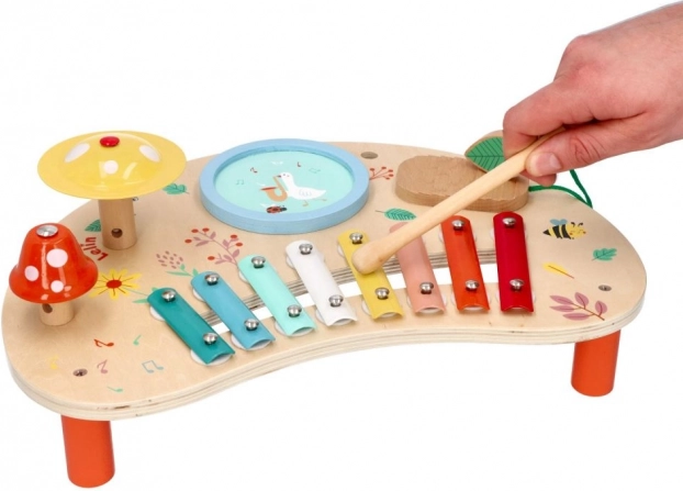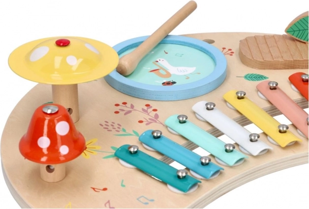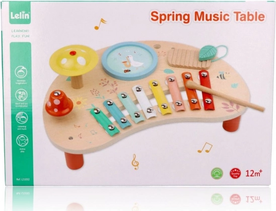 Pavasara mūzikas galds ir lieliska izvēle vecākiem, kuri vēlas atbalstīt savu bērnu muzikālo attīstību. Šis koka galds ietver krāsainas metāla taustiņu klavierītes, bungas un citas interaktīvas sastāvdaļas, kas nodrošina stundām ilgu izklaidi. Koka pamatne ar dzīvespriecīgām ziedu un dzīvnieku ilustrācijām rada viesmīlīgu atmosfēru ikvienam bērnam.