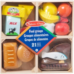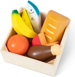 Šis koka pārtikas produktu komplekts ietver četras nelielas kastītes, kurās atrodami dažādi produkti, piemēram, piens, siers un maize. Tas ir paredzēts radošai spēlei, kas palīdz bērniem attīstīt sīko motoriku un iztēli.