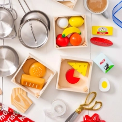 Komplekts ļauj bērniem attīstīt radošumu un iztēli, spēlējoties ar reālistiskām pārtikas precēm.