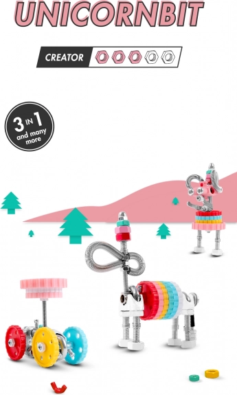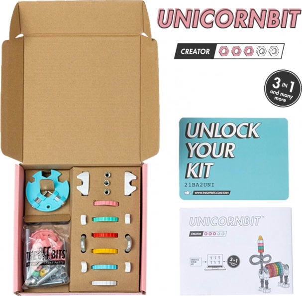 Maģiskais VienradzisBit bērniem atver fantāzijas un tehnisko prasmju pasauli. No viena komplekta var salikt 3 dažādus modeļus – VienradzisBit, pasakaino RobotBit vai AutoBit – un, pateicoties saderībai ar ikdienas priekšmetiem mājās, radīt arī savus unikālos izgudrojumus.