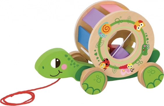 Piedzīvojiet prieku un mācīšanos ar šo velkamo bruņurupuci, kas kļūs par lielisku jūsu bērna draugu. Šī inovatīvā rotaļlieta darbojas kā formu šķirotājs un piedāvā sešus atvērumus dažādu formu ievietošanai, tostarp vienu lielu un piecus mazākus. Pateicoties priekšpusē piestiprinātajai auklai, bērni to var viegli vilkt sev līdzi un baudīt kustību pilnus mirkļus.