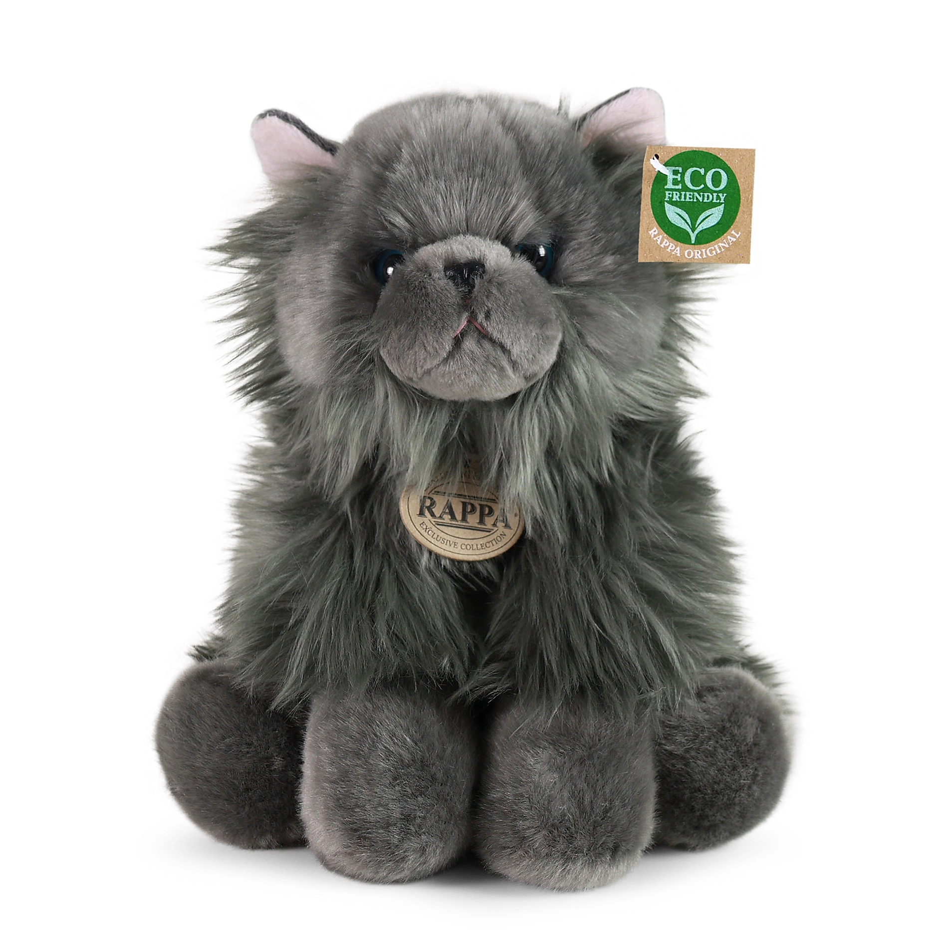 Šī sēdošā mīkstā britu kaķene 30 cm no RAPPA izceļas ar ļoti realistisku izskatu, maigu pelēku kažociņu un patīkamu pieskāriena sajūtu. Pateicoties ECO‑FRIENDLY pildījumam no pārstrādātām PET pudelēm, tā ir saudzīga pret dabu un vienlaikus droša arī pašiem mazākajiem.