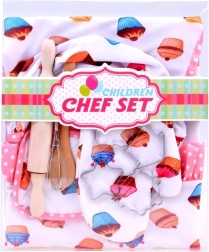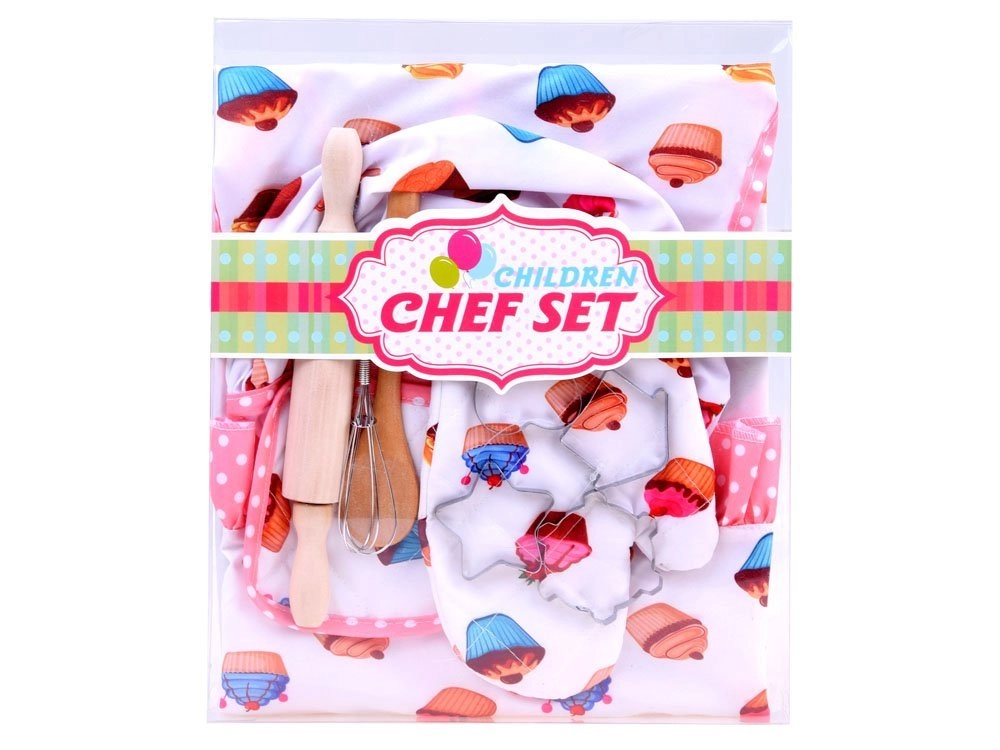 Mīlīgs bērnu konditorejas komplekts pārvērtīs ikvienu mazo virtuves palīgu īstā šefpavārā. Komplektā ir priekšauts, pavāra cepure, cimds un praktiski cepšanas piederumi, tostarp mīklas rullis, koka karote, putojamā slotiņa un metāla cepumu formiņas. Lieliski kopīgai cepšanai, drošai spēlei un radošuma attīstīšanai.