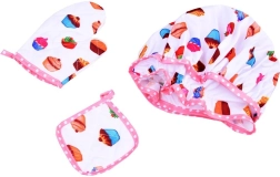 Šis pilnais komplekts mazajiem pavāriem ir ideāli piemērots pirmajai cepšanai un spēlēm “konditorejā”. Viegls priekšauts ar jautru kēksiņu motīvu pasargā apģērbu, savukārt cepure un cimds piešķir bērniem profesionalitātes sajūtu. Pateicoties īstiem rīkiem, piemēram, koka karotei, mīklas rullim, putojamajai slotiņai un metāla formiņām, bērni droši apgūst pamata gatavošanas prasmes.