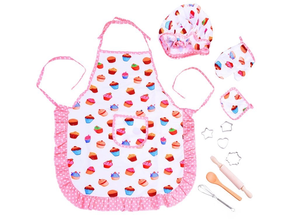 Komplekts veicina radošumu, sīko motoriku un sadarbību virtuvē. Iepakots dāvanu iesaiņojumā, tāpēc tas ir lieliski piemērots kā oriģināla dāvana bērniem, kuri labprāt palīdz cepšanā vai gatavošanā.