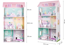 Šis izcilais koka leļļu namiņš piedāvā bezgalīgas izklaides stundas ikvienai meitenei un viņas draudzenēm. Namiņš ir izgatavots ne tikai ar akcentu uz precizitāti, bet arī uz bērnu drošību. Konstrukcija ir bez asām malām un bīstamiem elementiem, un izmantotās krāsas ir netoksiskas.
