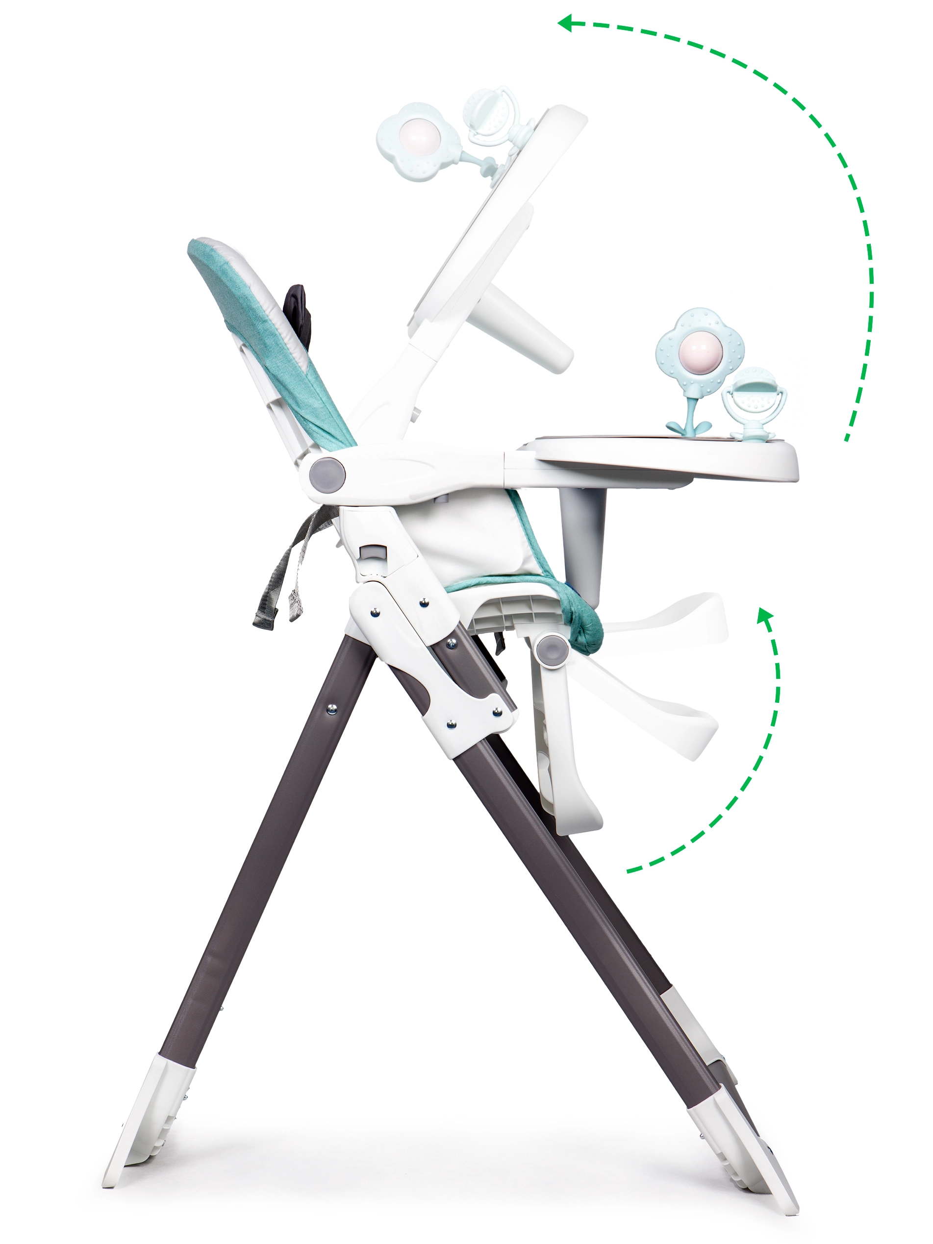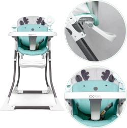 Meklējat krēsliņu, kas augs līdzi jūsu bērnam un neaizņems daudz vietas? ECOTOYS piedāvā kompakto risinājumu ar ātru salikšanu 1 sekundes laikā, pateicoties kam to var viegli novietot glabāšanā vai paņemt līdzi ceļojumos. Divdaļīgā paplāte ar paaugstinātām malām novērš šķidrumu izlīšanu un nodala zonu ēšanai un rotaļām. Komplektā ir arī krāsainas rotaļlietas, kas izklaidēs mazo ēdāju.