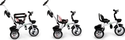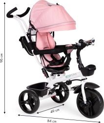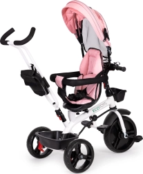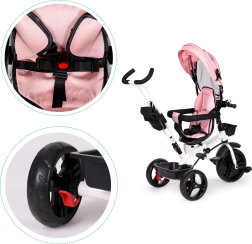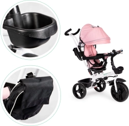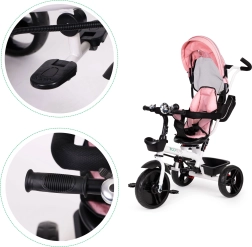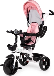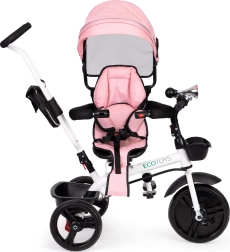 Šis ECOTOYS trīsritenis ir aprīkots ar izturīgu tērauda konstrukciju, kas garantē ilgu kalpošanas laiku. Pateicoties rotējošajam sēdeklim, var viegli mainīt braukšanas virzienu, ko īpaši novērtēs mazāki bērni. Noņemamā nojume, drošības stieņi un vadības rokturis piešķir daudzpusību un pielāgošanas iespējas.