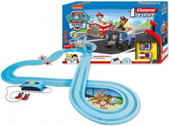 Izklaides autosacīkšu trase pašiem mazākajiem braucējiem ar PAW Patrol motīvu un 3,5 m garumu piedāvā vienkāršu vadību, interaktīvas spēles, gaismas un skaņas. Komplektā ietilpst mašīnītes Chase un Marshall, propelleri lielākai jautrībai, taisnes un līkumi. Ideāla pirmā trase bērniem no 3 gadu vecuma, darbojas ar baterijām ar darbības laiku līdz pat 6 stundām.